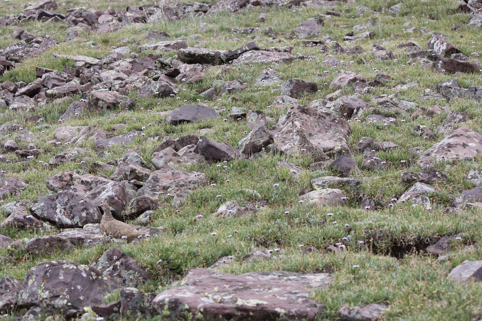 2) White-tailed Ptarmigan- This was the last of my 2013 resolution birds I saw, late in July. Jeff Bilsky and I already had a great day of birding in the Uintas after a 3 hour drive from Salt Lake City that had us drive through Wyoming and on some rough dirt roads. From the Bald Mountain B trailhead we had already hiked almost 3 miles and had seen awesome species up close ranging from nest Northern Goshawks to American Three-toed Woodpecker to Gray Jays to Pine Grosbeak and nesting American Pipits. Before summiting, we searched the flanks of the top of the mountain above treeline with no success until we had gotten 3/4ths of the way around the top. There Jeff somehow picked out a pair of White-tailed Ptarmigan that were almost perfectly camouflaged in the lichen covered rocks. The pair walked close by us and eventually were comfortable to feed about 10 yards away- what amazing luck and not to mention a spectacular view to boot! Soon after we summited Bald Mountain B, 11776 feet, and made our way down the mountain. Unfortunately we got lost on the way down and ended up having to go down a particularly steep part of the mountain to get back to my car. Next time I will try to memorize the trail so I don't have to endure any impromptu adventures after finding a life species.